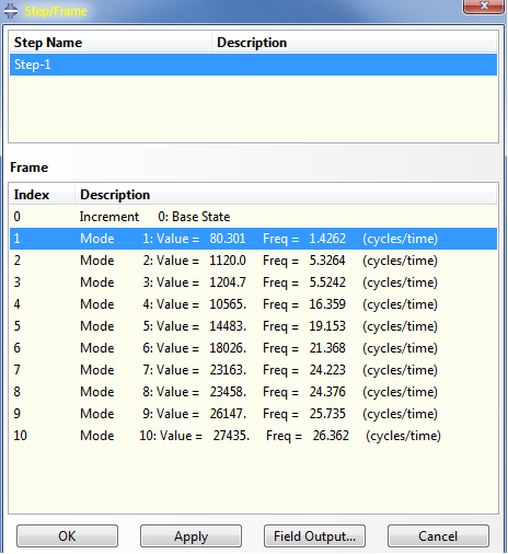- Configure a Linear Perturbation step to perform an Abaqus eigenfrequency analysis and extract the first 10 modes.